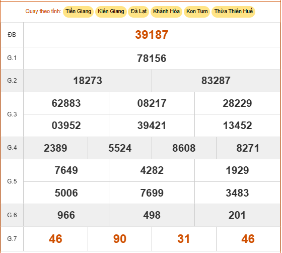 | Giải Đặc Biệt | Số lần xuất hiện | Lô tô | Số lần xuất hiện | Giải 7 | Số lần xuất hiện |