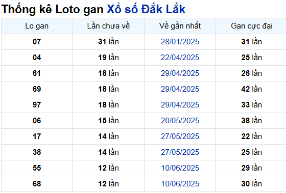 💰 Lô tô gan lâu chưa ra: 07 – 04 – 61 – 97 – 06