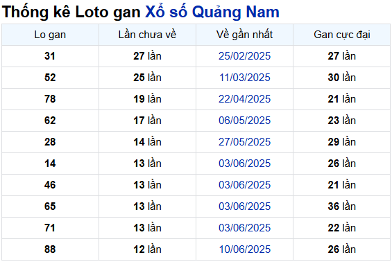 💰 Lô tô gan lâu chưa ra: 31 – 52 – 78 – 62 – 28