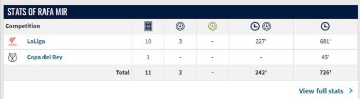 Lịch sử ghi bàn trong 5 trận gần nhất của Rafa Mir (Ngôi sao của đội Elche)