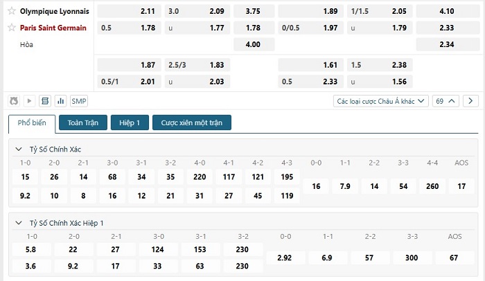 Hầu hết các nhà cái cùng đang đánh giá cao Paris Saint-Germain tại chuyến hành quân lần này trên sân Lyon, điều này cũng đang được thể hiện thông qua mốc kèo châu Á được niêm yết hiện tại. Về mặt phong độ mà nói với Paris Saint-Germain họ cũng có được những điểm được đánh giá cao hơn nhiều so với Lyon, bởi vậy mà với trình độ hiện tại của mình việc Paris Saint-Germain có một chiến thắng cũng là trong tầm tay.