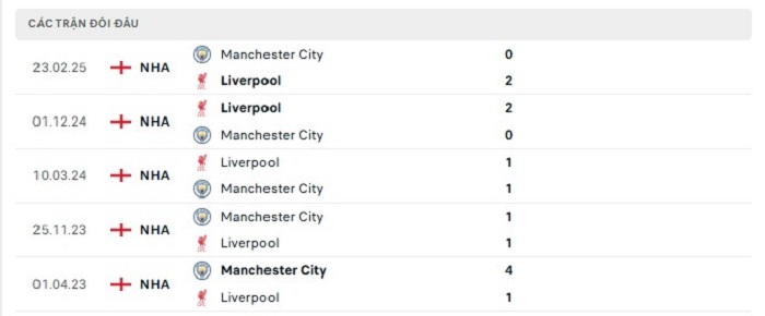 Những năm qua giữa Manchester City và Liverpool không có quá nhiều chênh lệch với nhau, thật vậy bởi tổng cộng 5 lần gặp nhau gần nhất thì chủ nhà thắng 1, hoà 2 và thua 2 trước đối thủ.