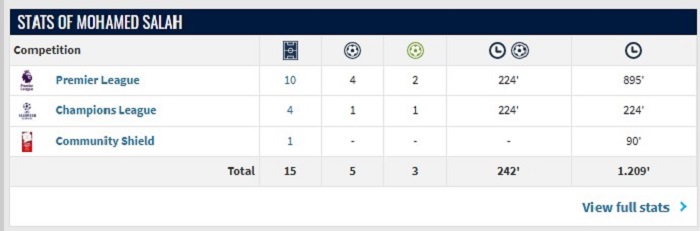 Lịch sử ghi bàn trong 5 trận gần nhất của Mohamed Salah (Ngôi sao của đội Liverpool)